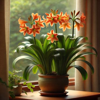 군자란(Clivia spp.)은 수선화과에 속하는 상록성 다년생 식물입니다.