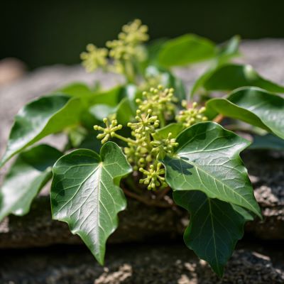 상록성 덩굴식물: 송악은 겨울에도 푸른 잎을 유지하는 상록성 덩굴식물입니다.